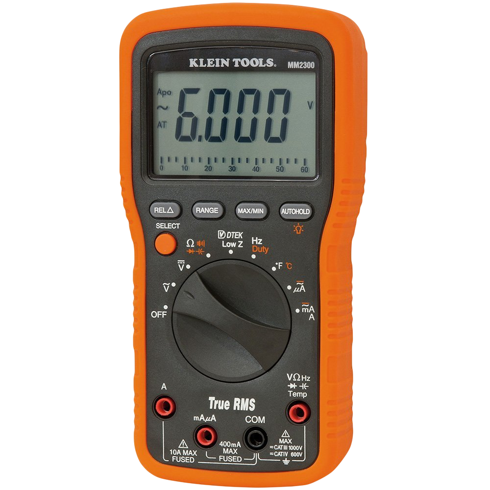 Incluye estuche de Klein, termopar, cables de prueba y baterías